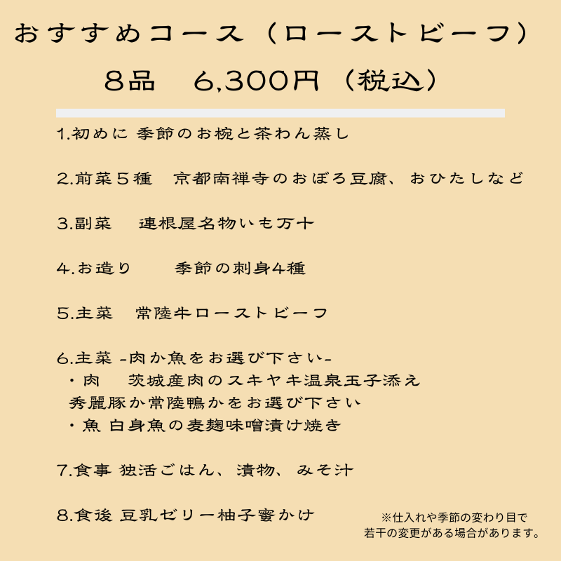 ◆◇◆ おすすめコース (ローストビーフ) 8品 ◆◇◆