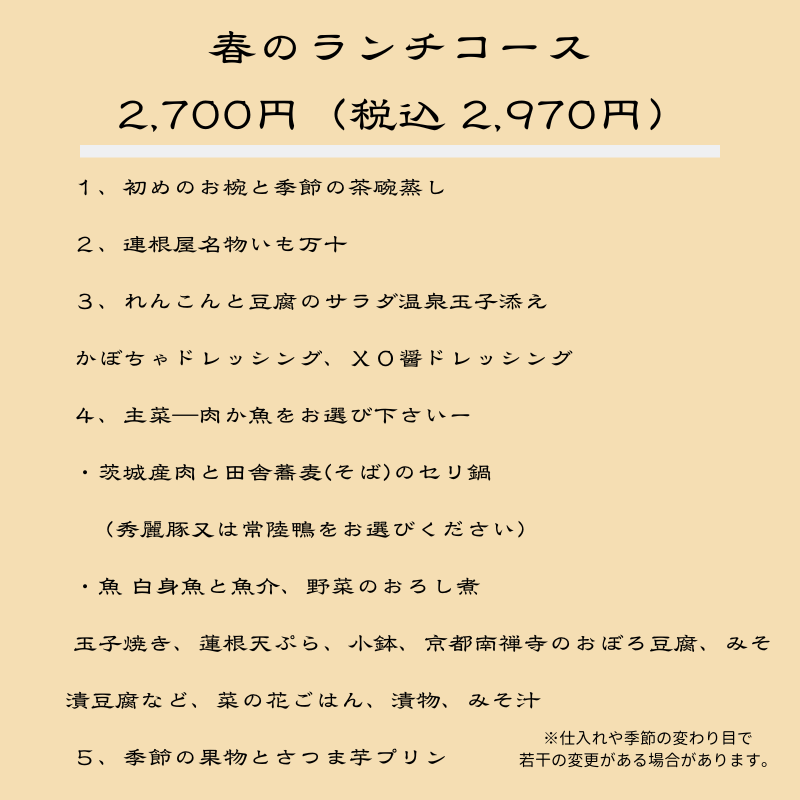 ※土曜日・日曜日のランチは、ディナーコースからお選びください。
