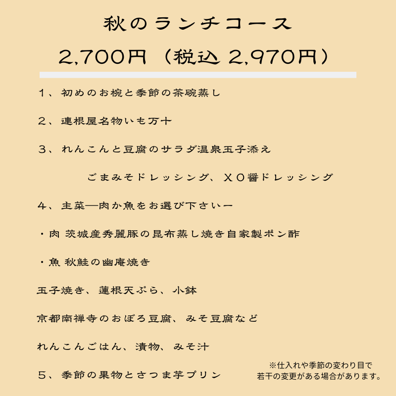 ※土曜日・日曜日のランチは、ディナーコースからお選びください。