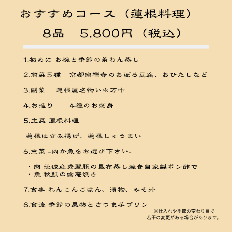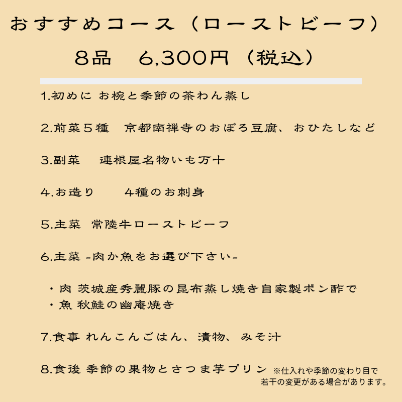 事前予約制となります。ご予約の際にメニューもおしらせください。